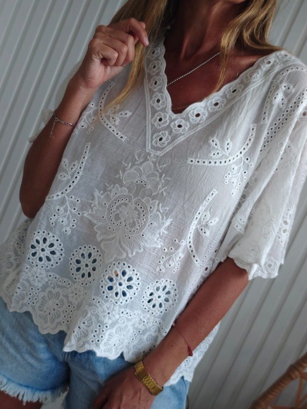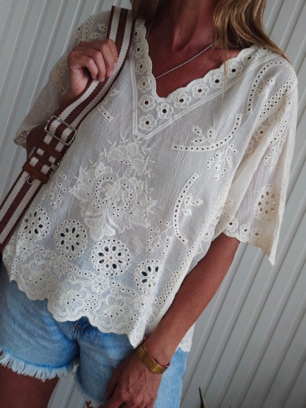 Blusa Antonia importada de Broderie. Se adaptan hasta un L amplio