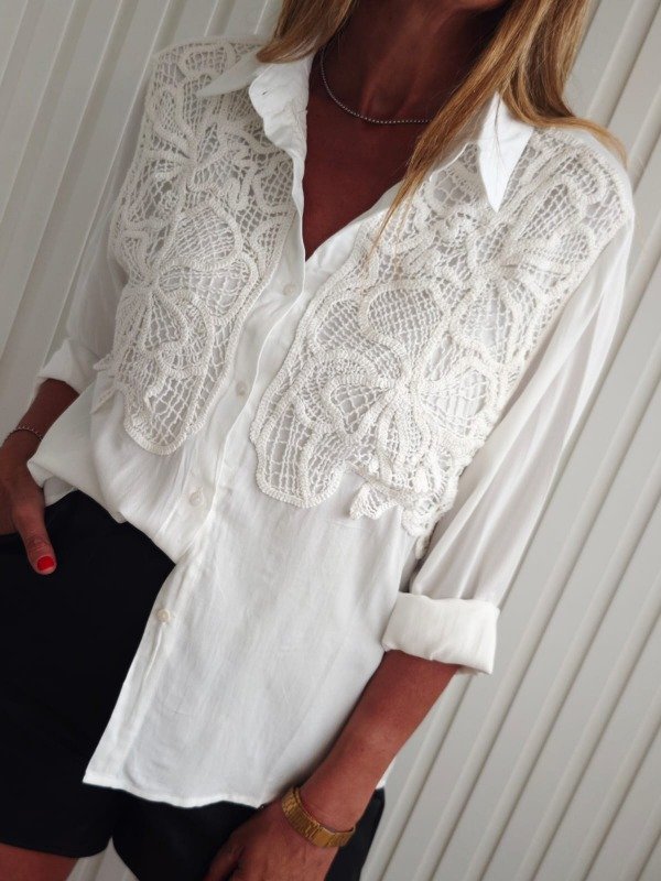 Camisa Importada Daniela, con aplique en crochet