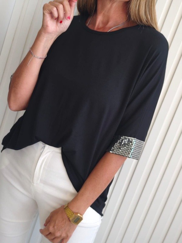 Remera Luna, de creppe con detalle lentejuelas en manga , abarca un Xl/XXL