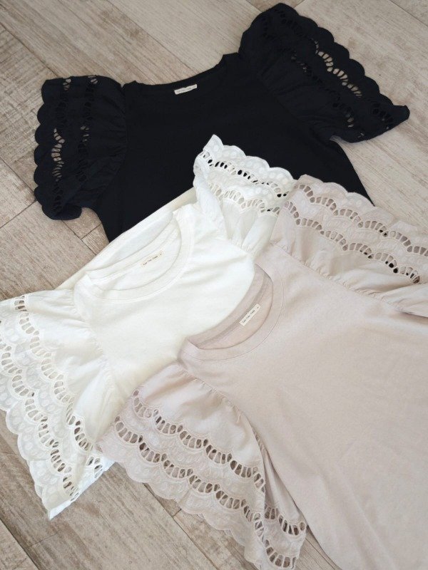 Remera Importada Brisa con detalle broderie, abarca M/L